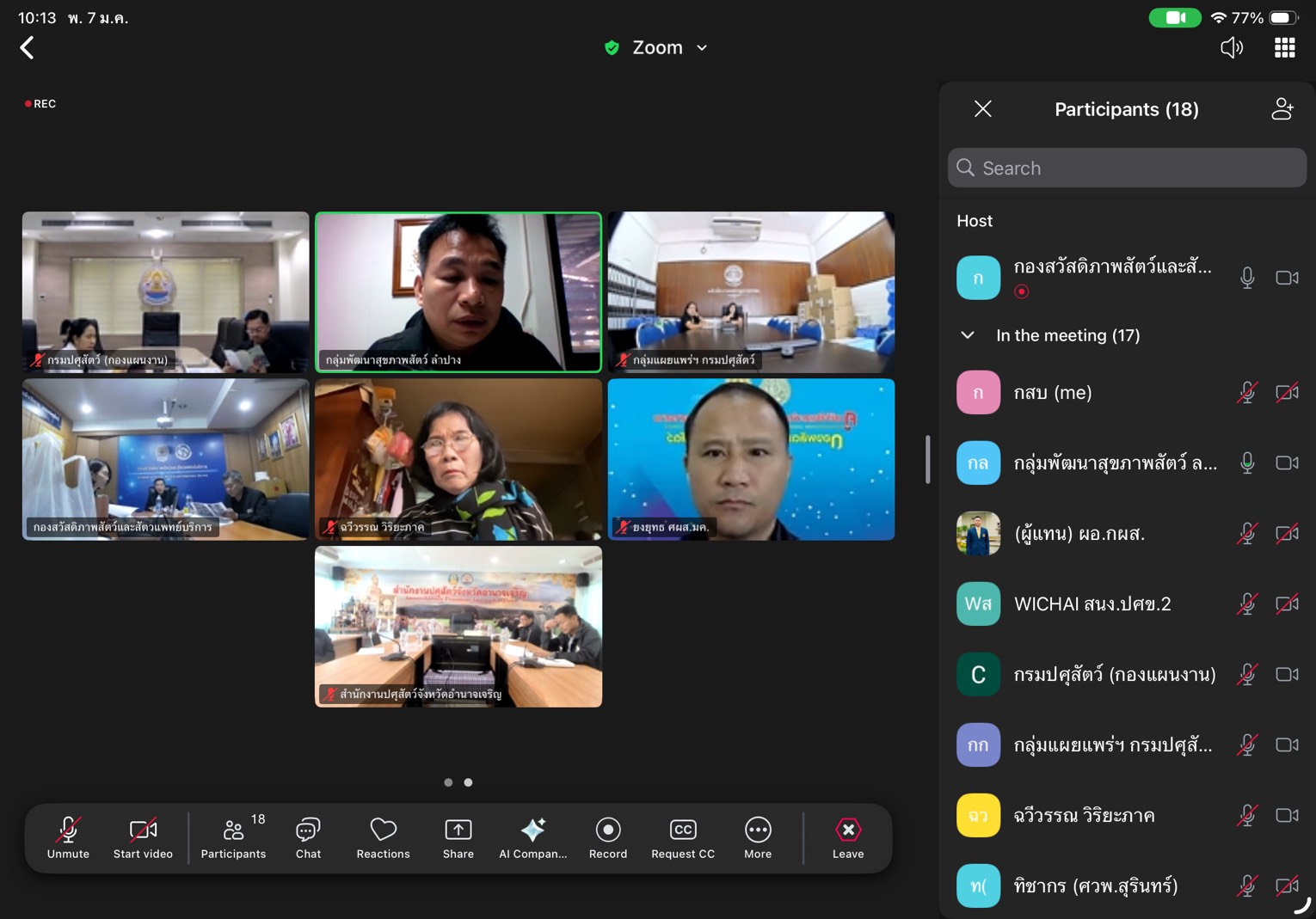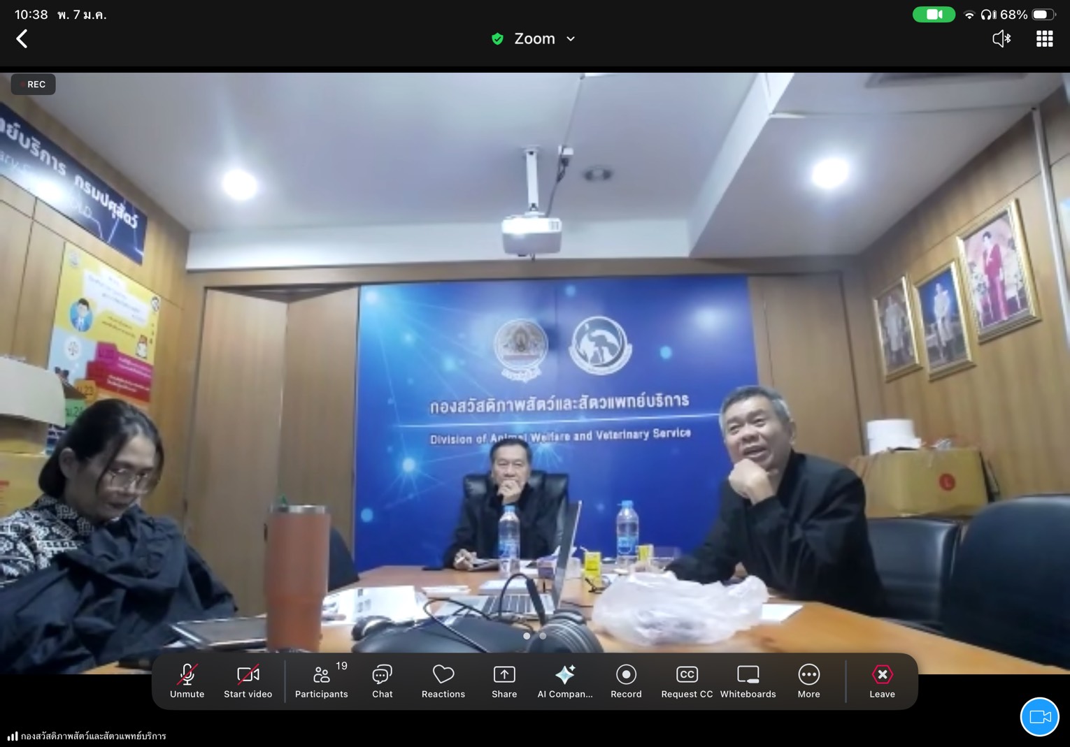 นายสัตวแพทย์ชัยวลัญช์ ตุนาค นายสัตวแพทย์เชี่ยวชาญ ผู้อำนวยการกองสวัสดิภาพสัตว์และสัตวแพทย์บริการ มอบหมายให้นายสัตวแพทย์พงษ์เทพ เอกอุดมชัย ผู้อำนวยการกลุ่มสัตวแพทย์บริการ พร้อมด้วยสัตวแพทย์หญิงรัชณี ศรีฐาน จัดประชุมคณะอนุกรรมการดำเนินงานโครงการสัตวแพทย์พระราชทาน ในพระราชดำริสมเด็จพระนางเจ้าสิริกิติ์ พระบรมราชินีนาถ พระบรมราชชนนีพันปีหลวง ครั้งที่ 2/2569 เพื่อแจ้งผลการดำเนินการโครงการสัตวแพทย์พระราชทานฯ ในพื้นที่จังหวัดลำปาง และพิจารณาแผนการดำเนินการโครงการสัตวแพทย์พระราชทานฯ พื้นที่จังหวัดอำนาจเจริญ ประจำปีงบประมาณ 2569 ณ ห้องประชุมกองสวัสดิภาพสัตว์และสัตวแพทย์บริการ ตึกจักรพิชัย ชั้น 5 กรมปศุสัตว์ กรุงเทพมหานคร และผ่านระบบอิเล็กทรอนิกส์ Zoom Meeting