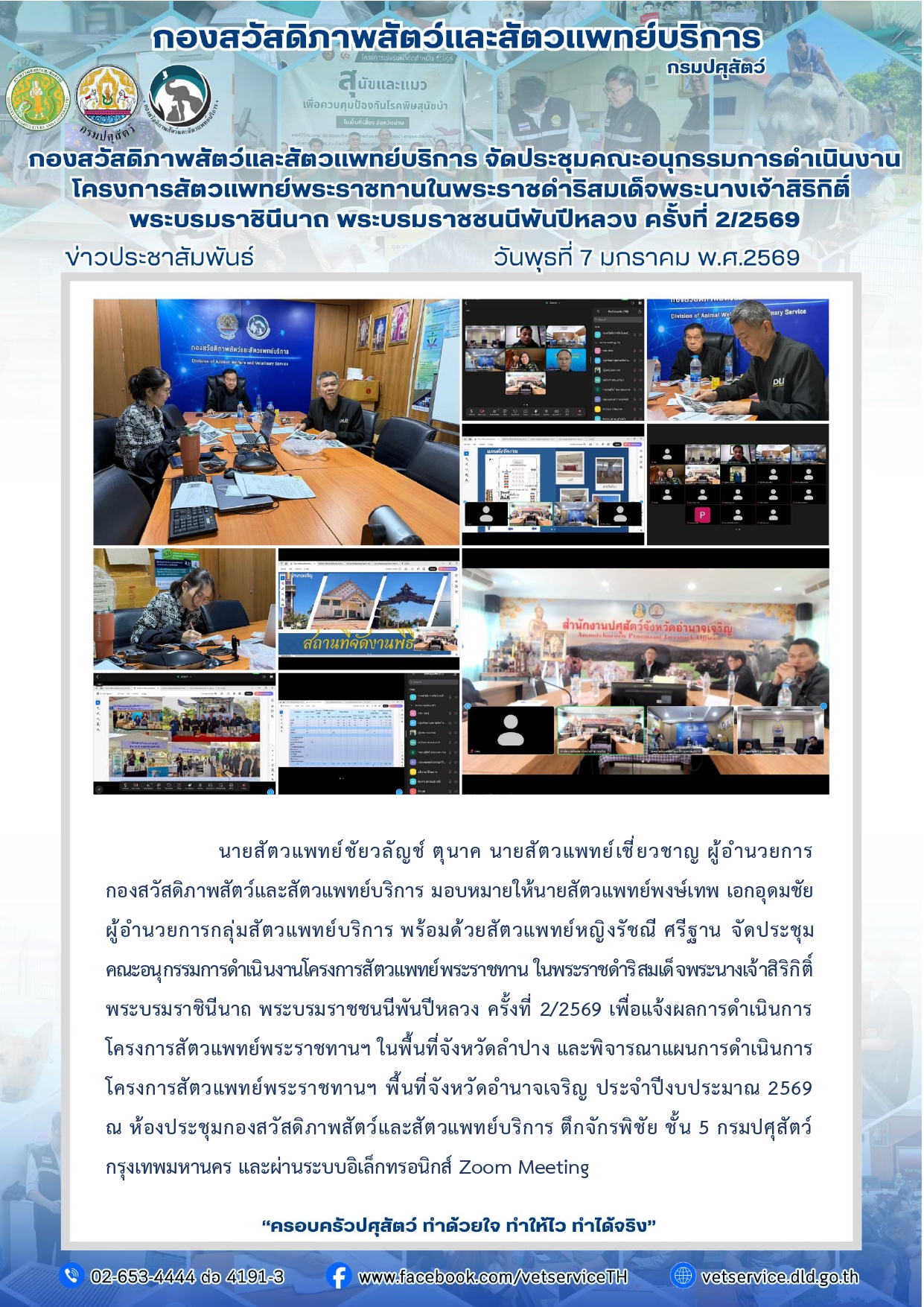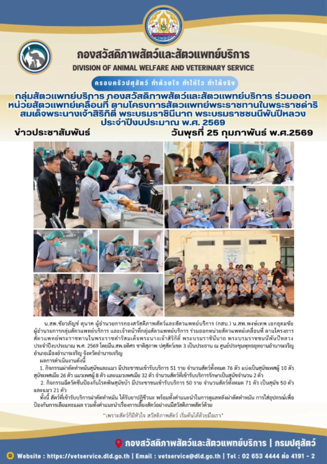 ผลการปฏิบัติงานโครงการสัตวแพทย์พระราชทานฯ