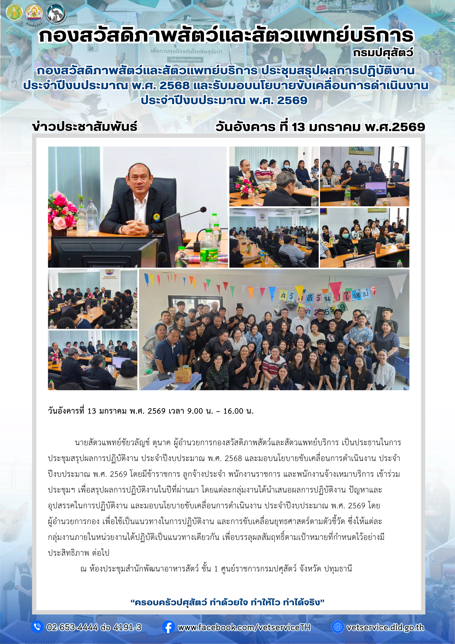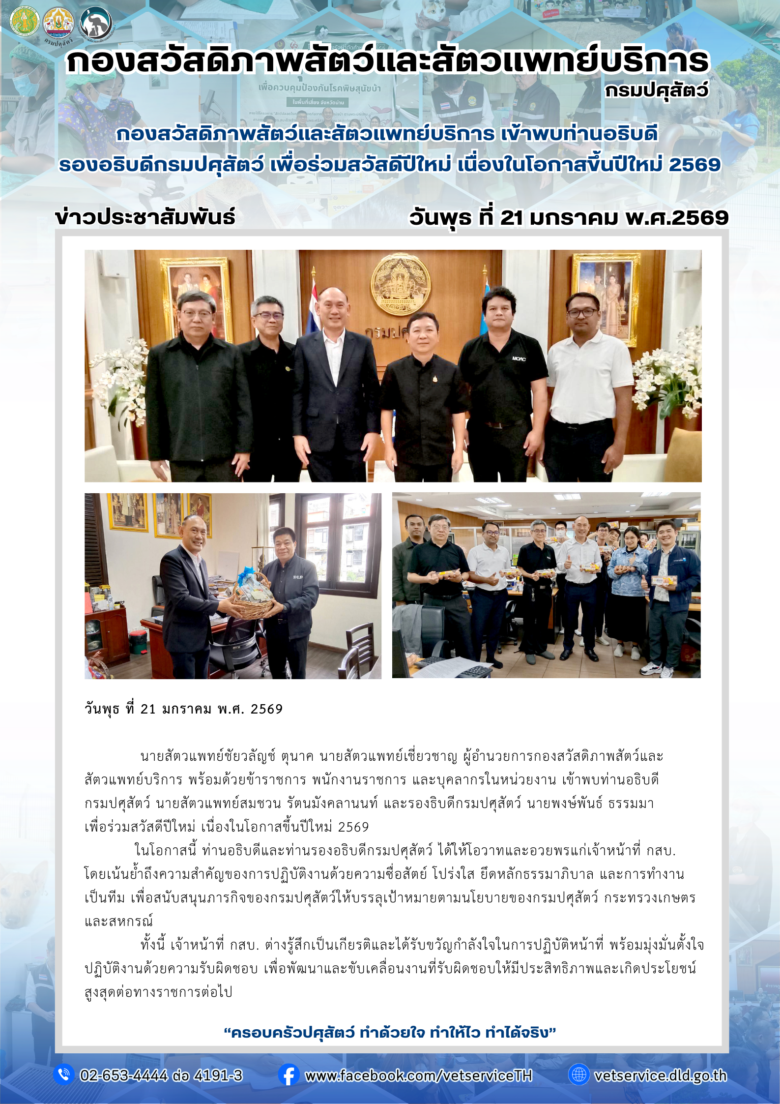 สงวนลิขสิทธิ์ พ.ศ. 2568 ตามพระราชบัญญัติลิขสิทธิ์ 2537 พัฒนาเว็บไซต์โดย ผู้ดูแลเว็บไซต์ กองสวัสดิภาพสัตว์และสัตวแพทย์บริการ กรมปศุสัตว์ : กลุ่มบริหารทั่วไป