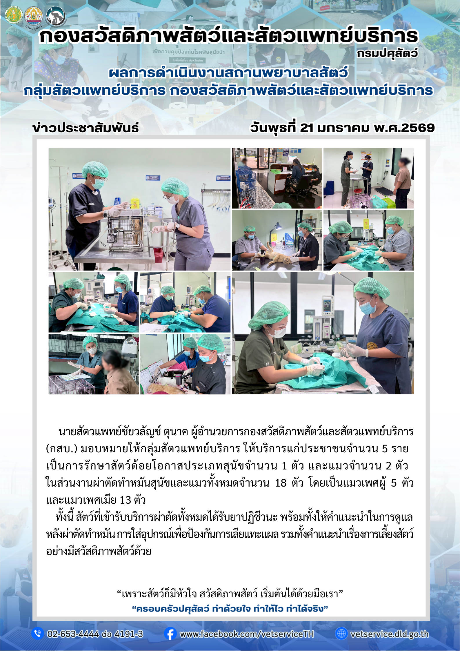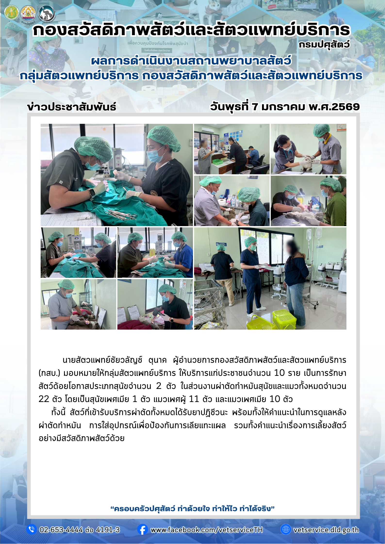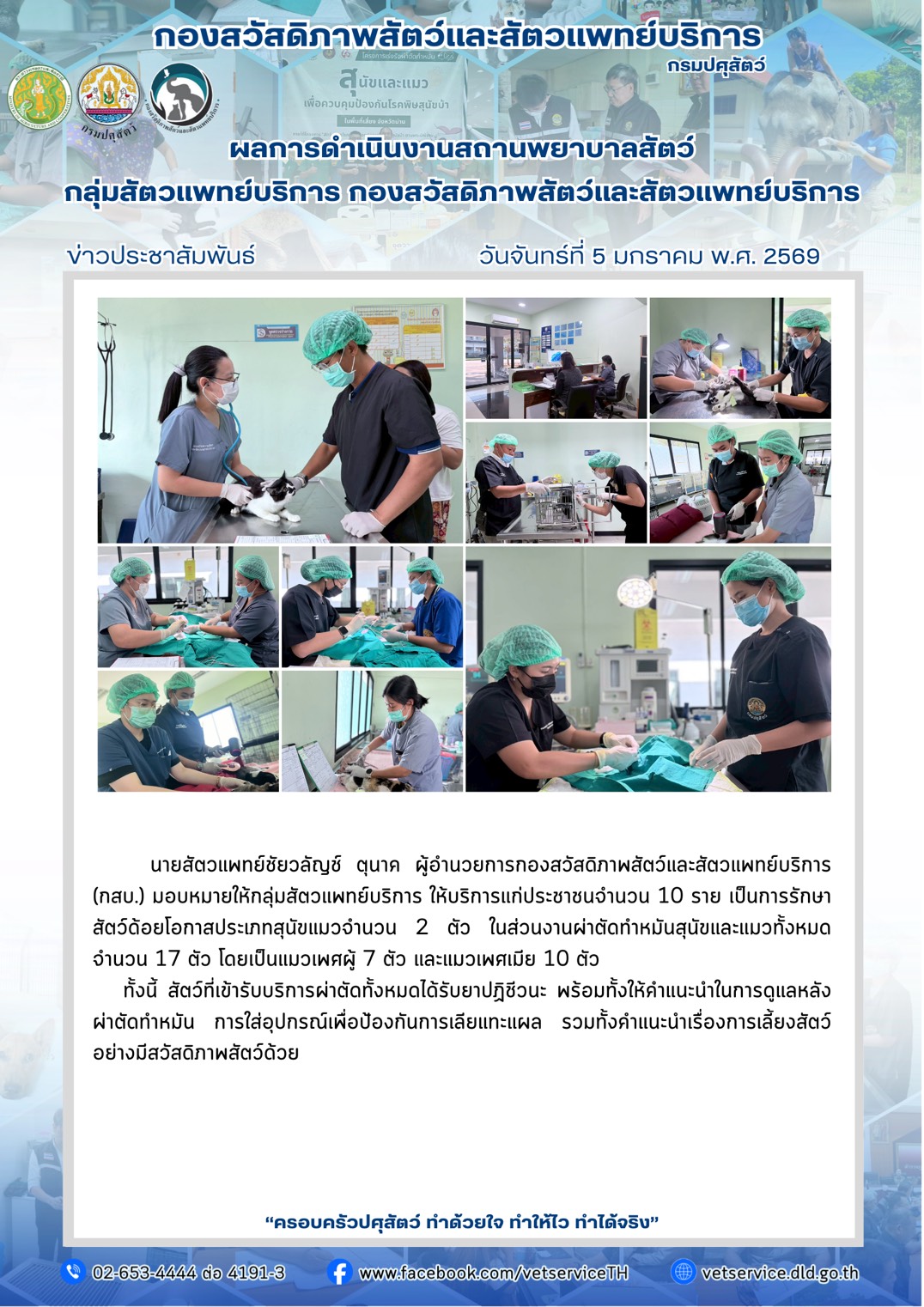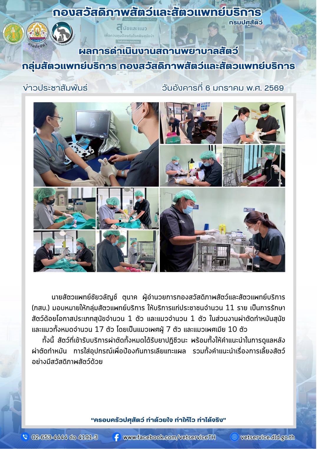 ผลการปฏิบัติงานของกลุ่มสัตวแพทย์บริการ