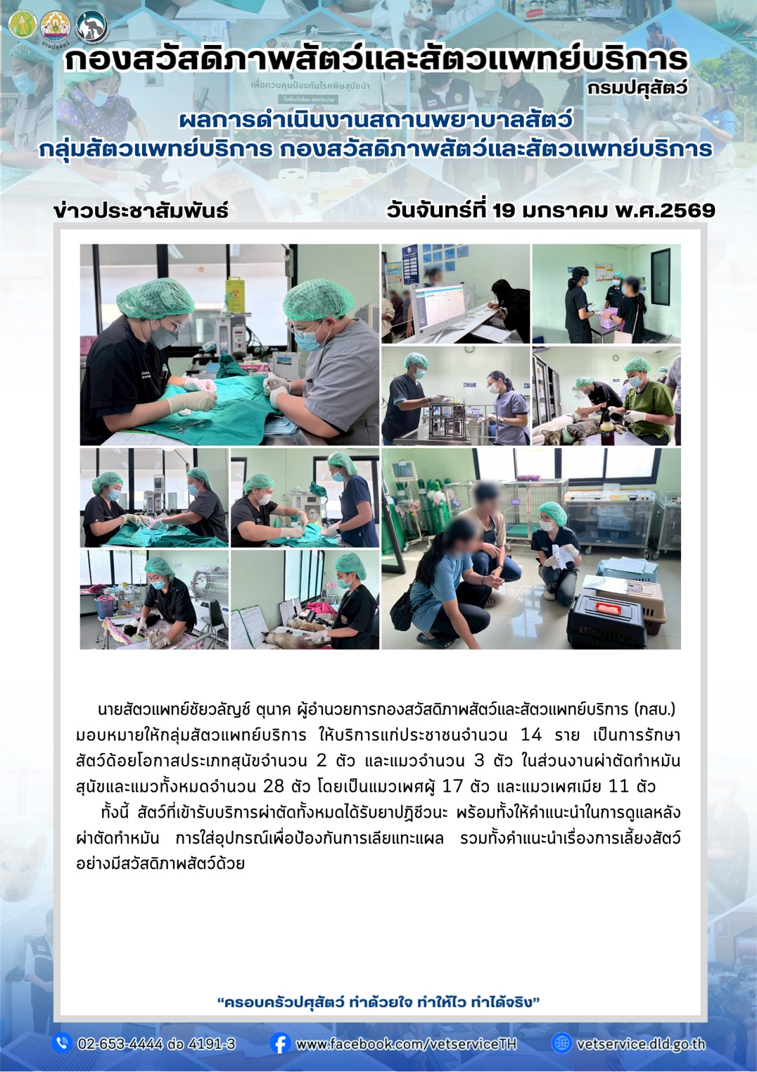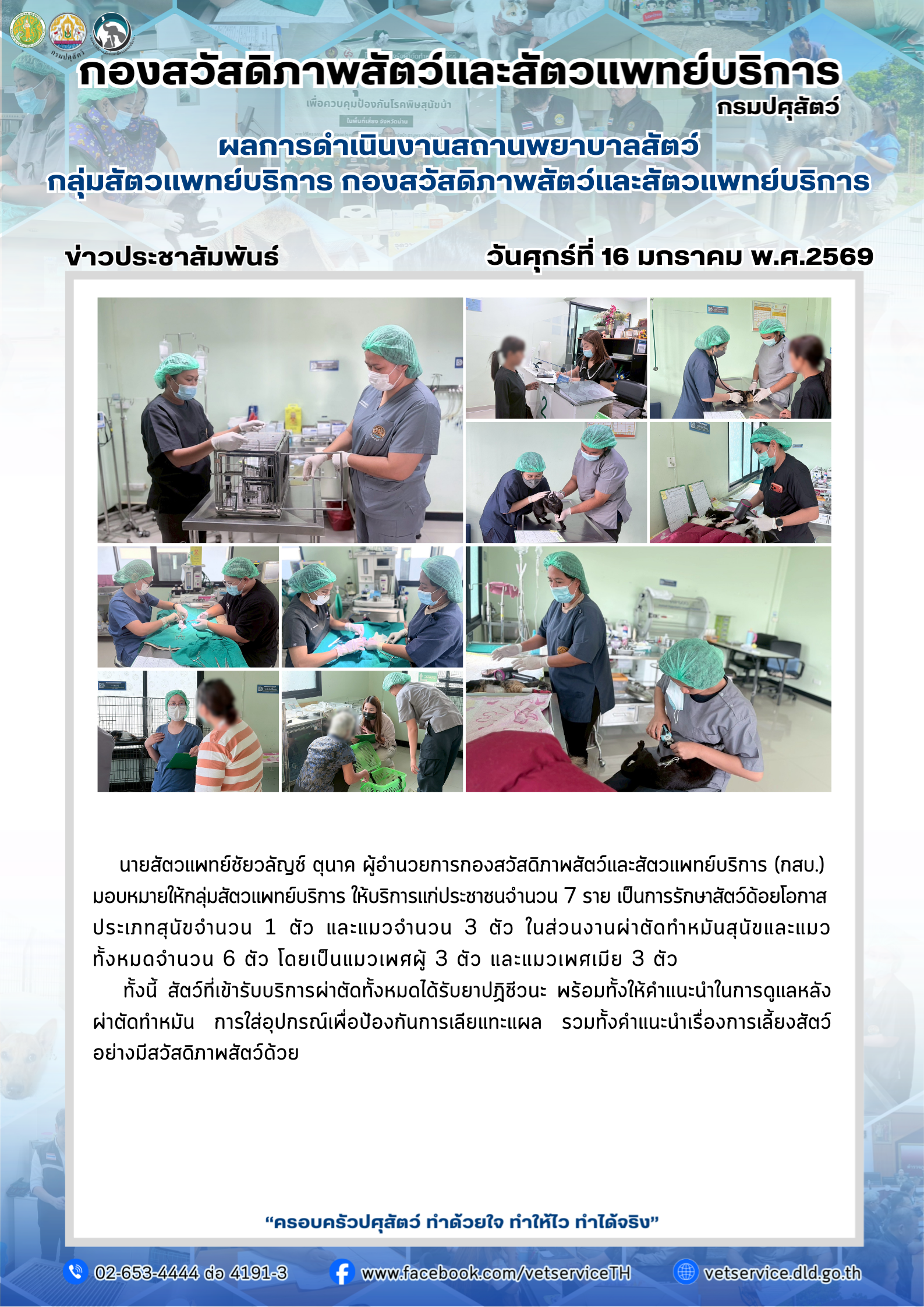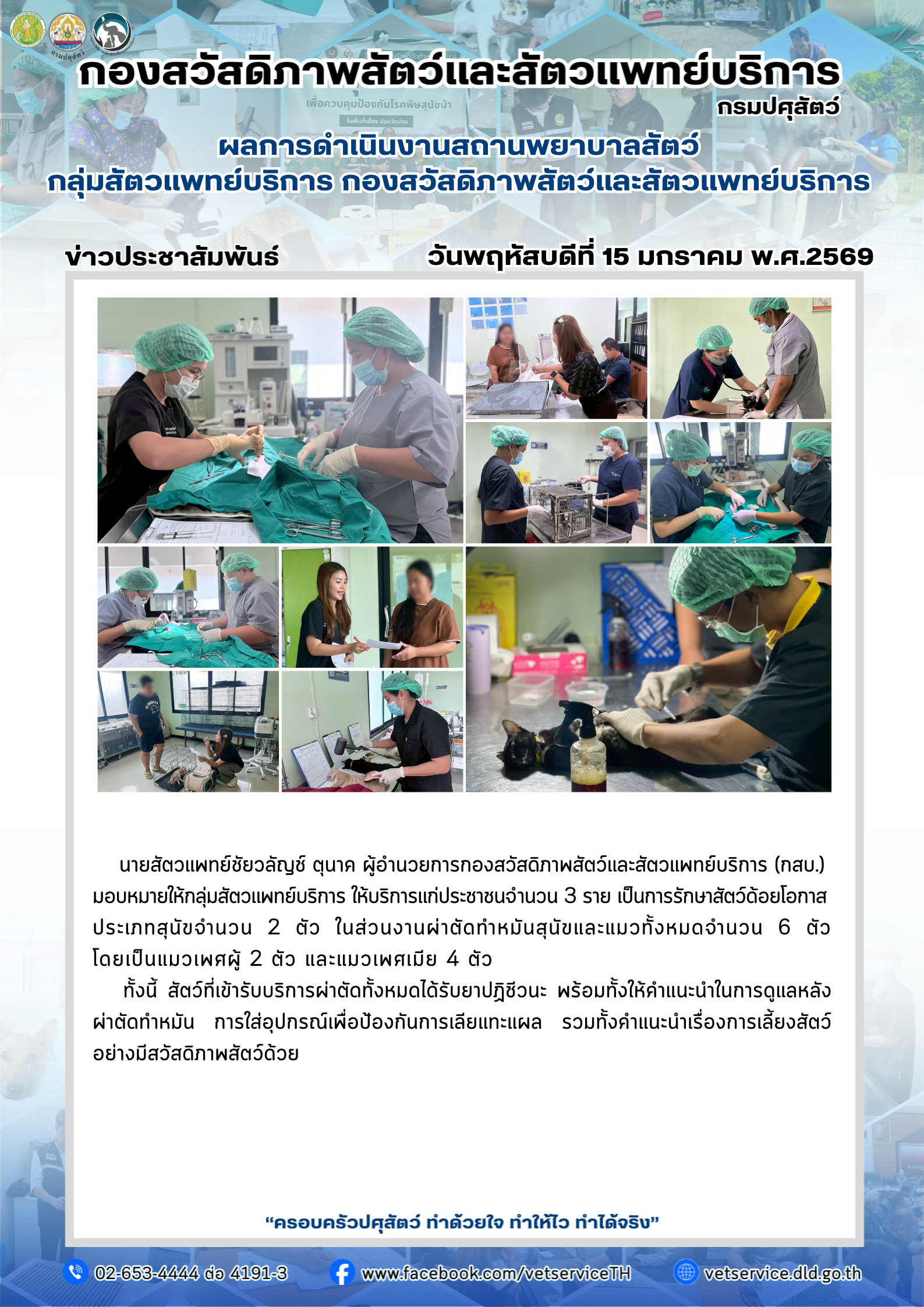 ผลการปฏิบัติงานของกลุ่มสัตวแพทย์บริการ