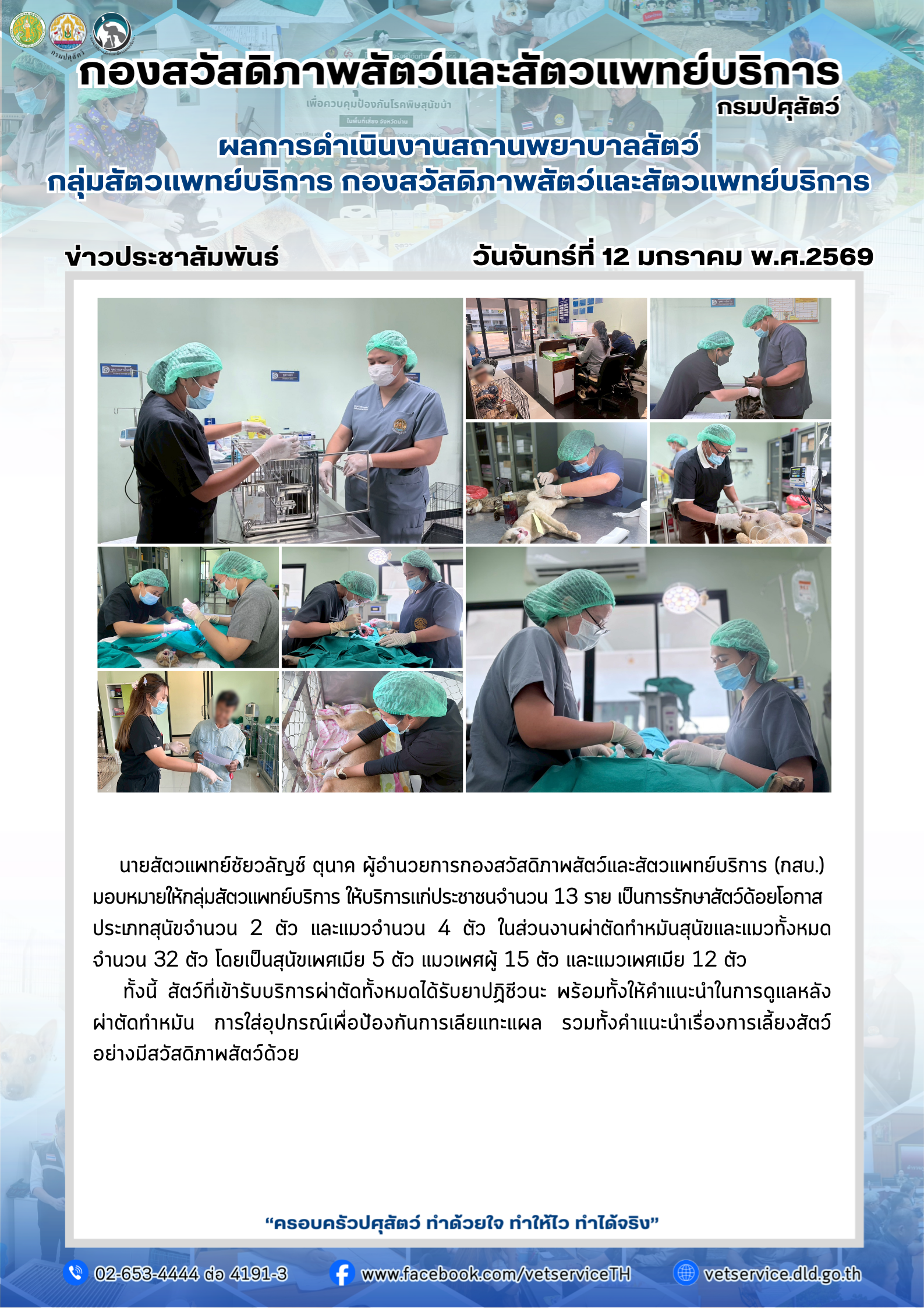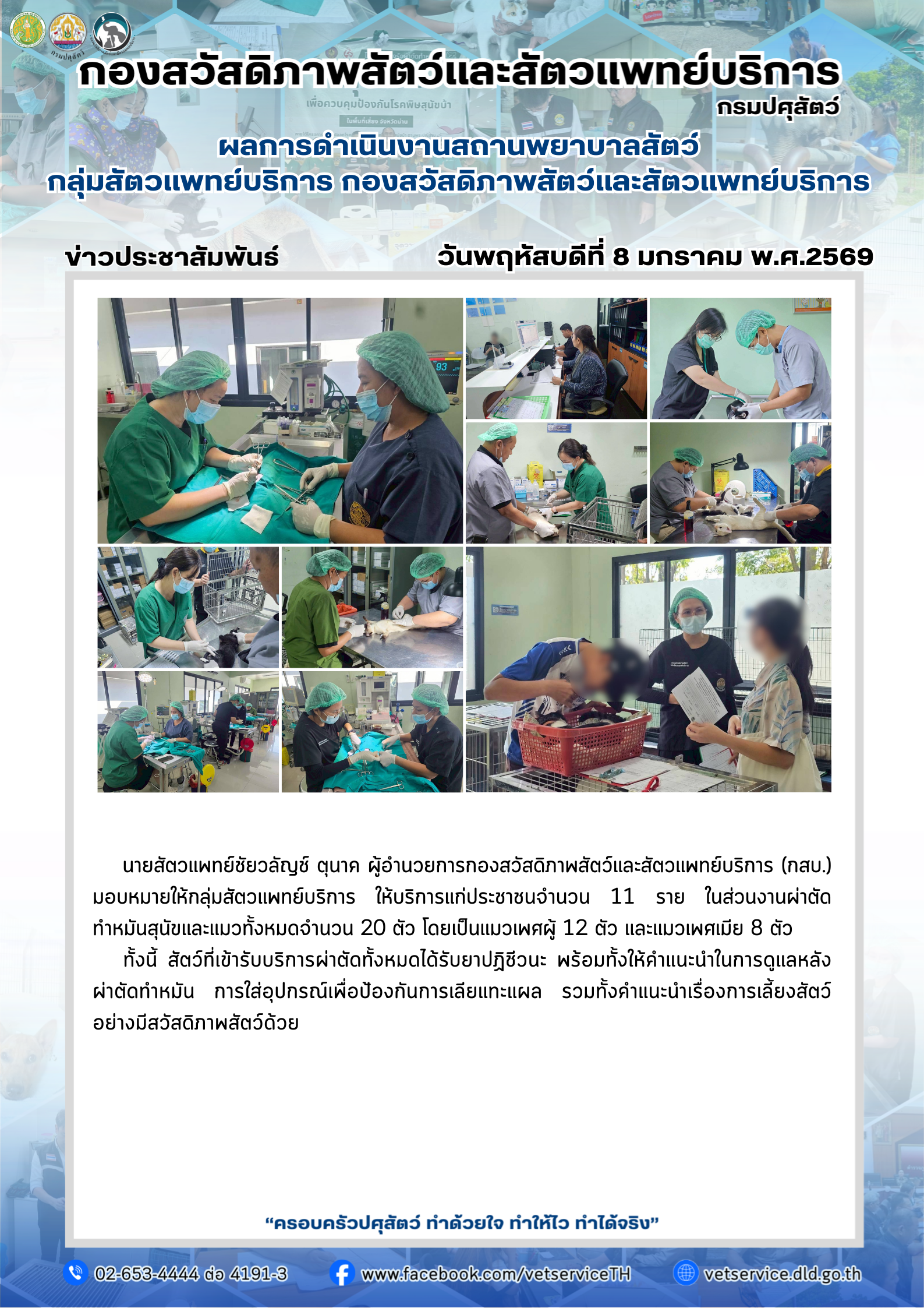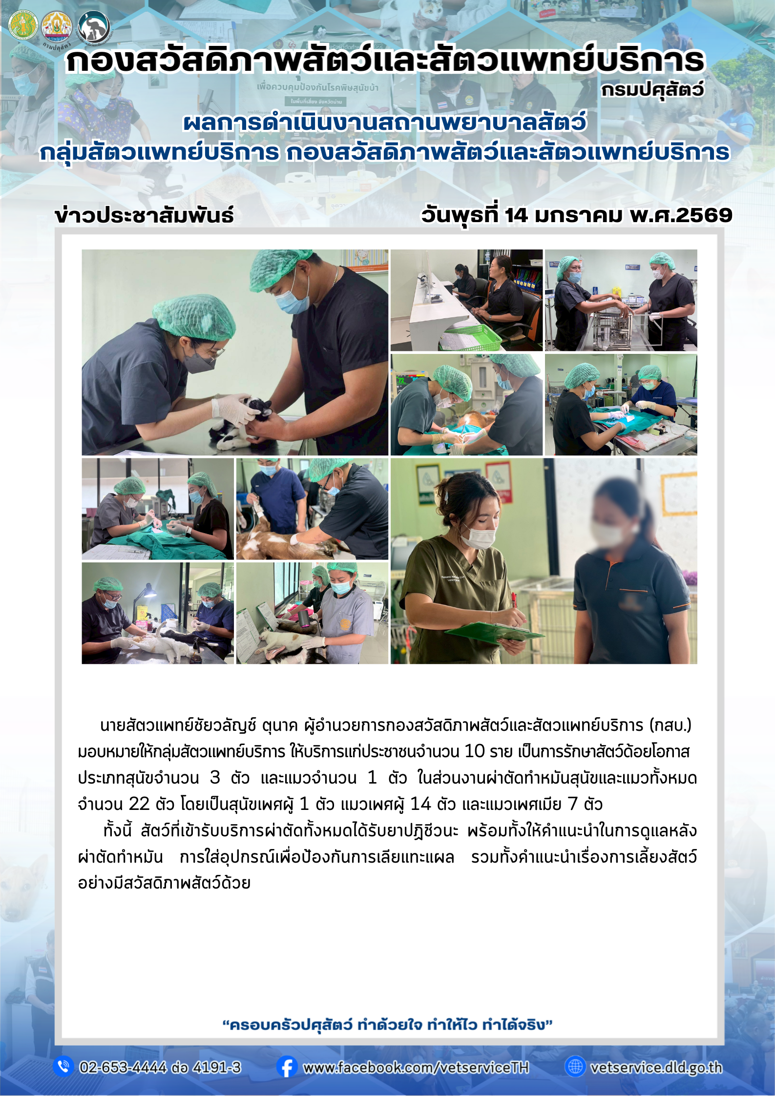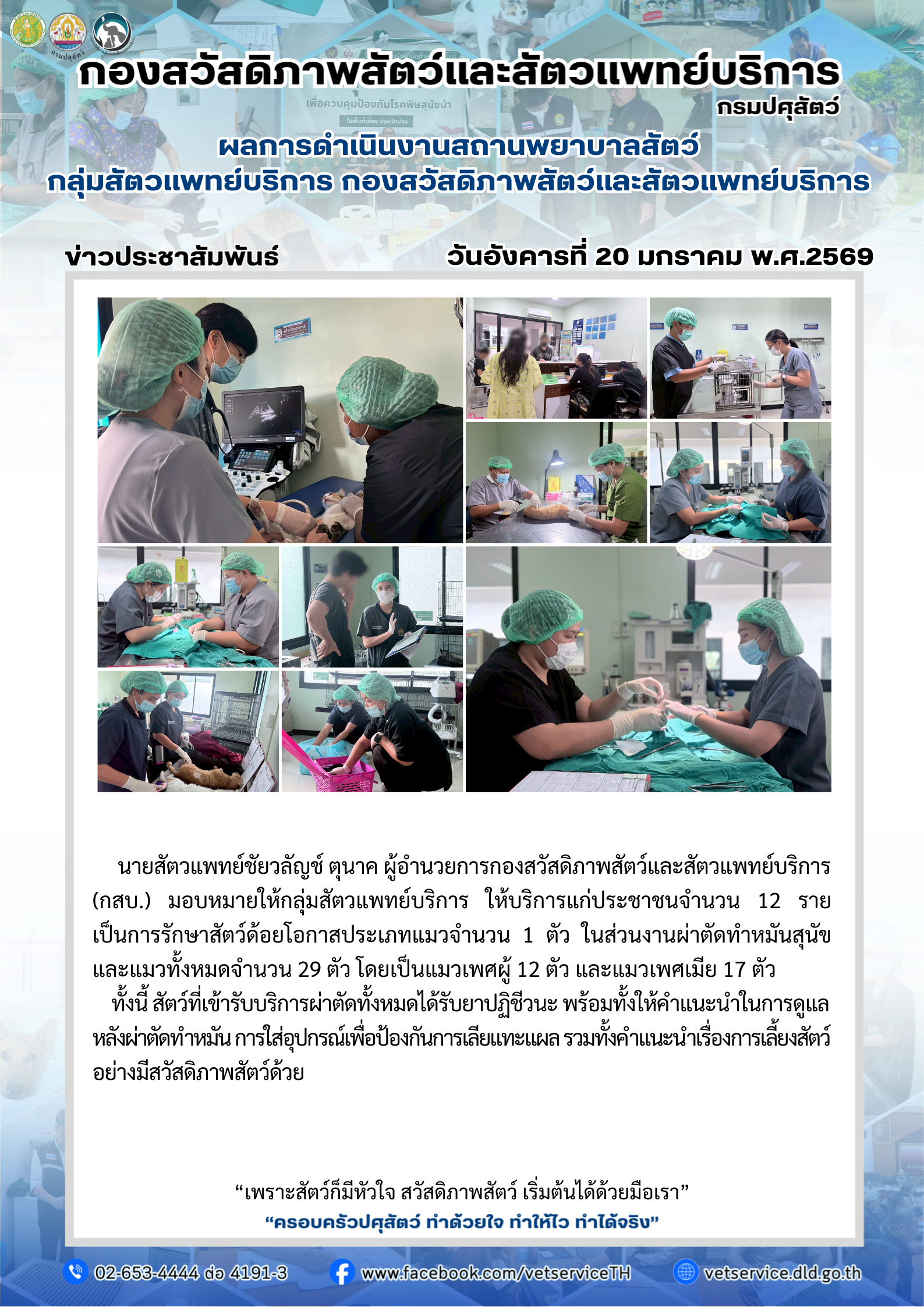 ผลการปฏิบัติงานของกลุ่มสัตวแพทย์บริการ