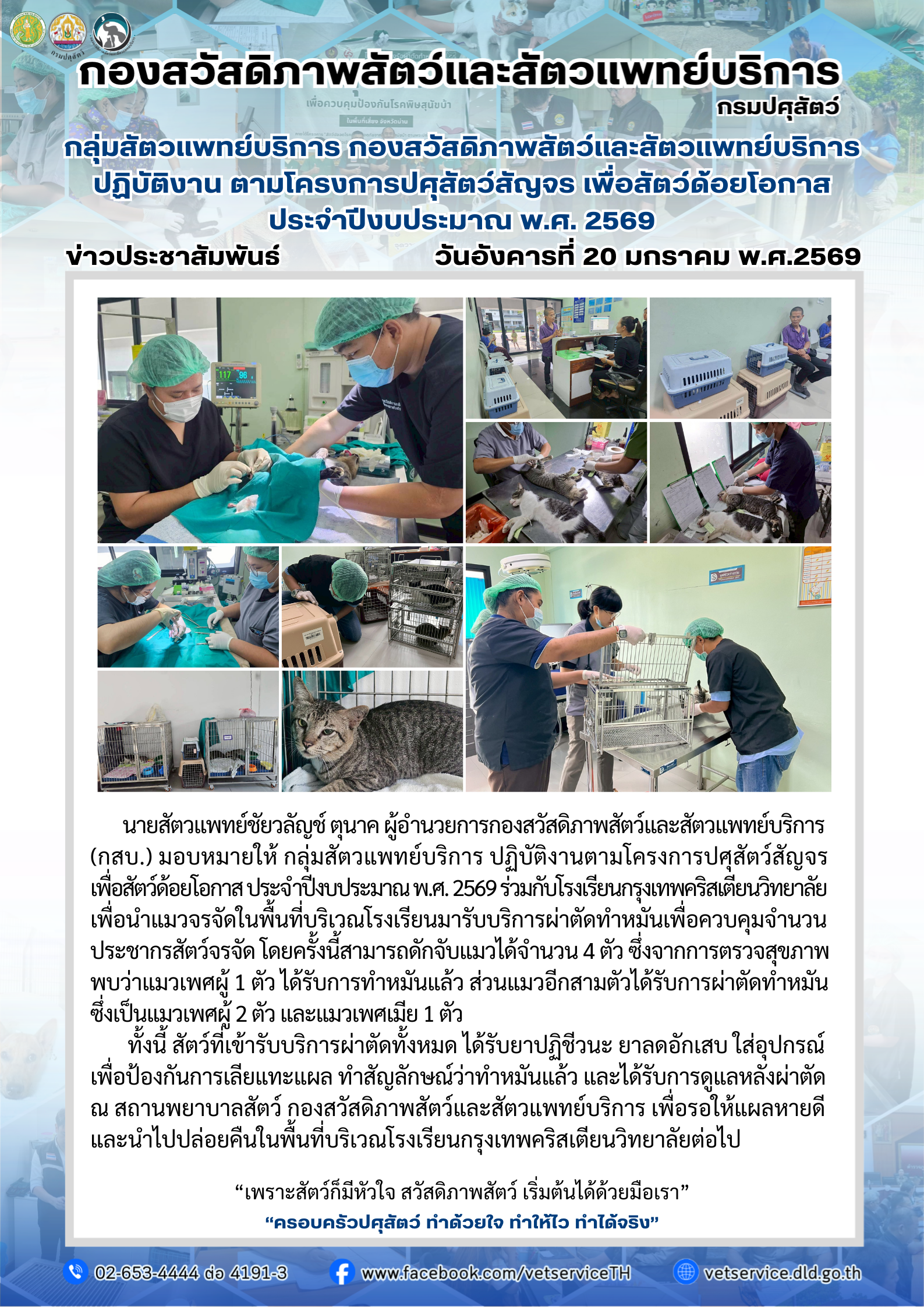 สงวนลิขสิทธิ์ พ.ศ. 2568 ตามพระราชบัญญัติลิขสิทธิ์ 2537 พัฒนาเว็บไซต์โดย ผู้ดูแลเว็บไซต์ กองสวัสดิภาพสัตว์และสัตวแพทย์บริการ กรมปศุสัตว์ : กลุ่มบริหารทั่วไป